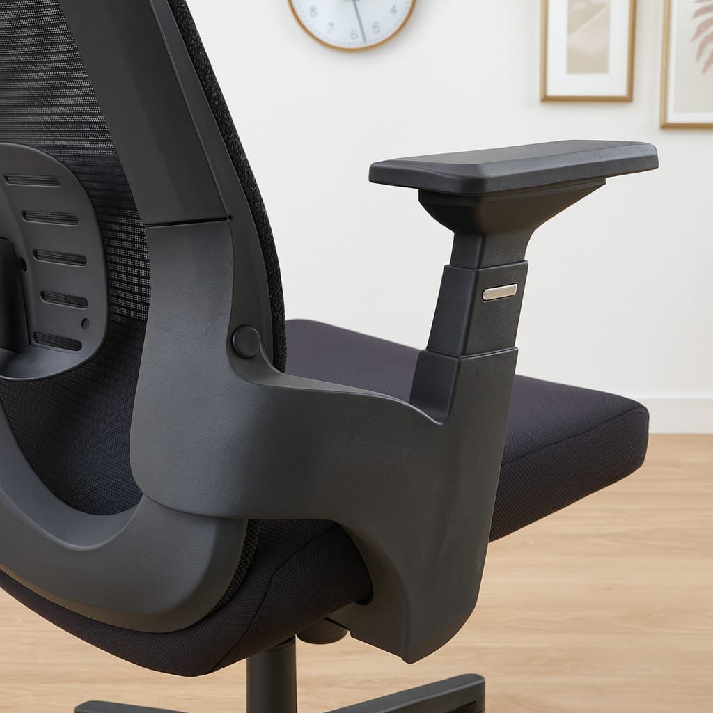 The armrests are fixed (not height-adjustable), giving a firm, stable resting surface for your arms, reducing shoulder strain during extended work sessions.